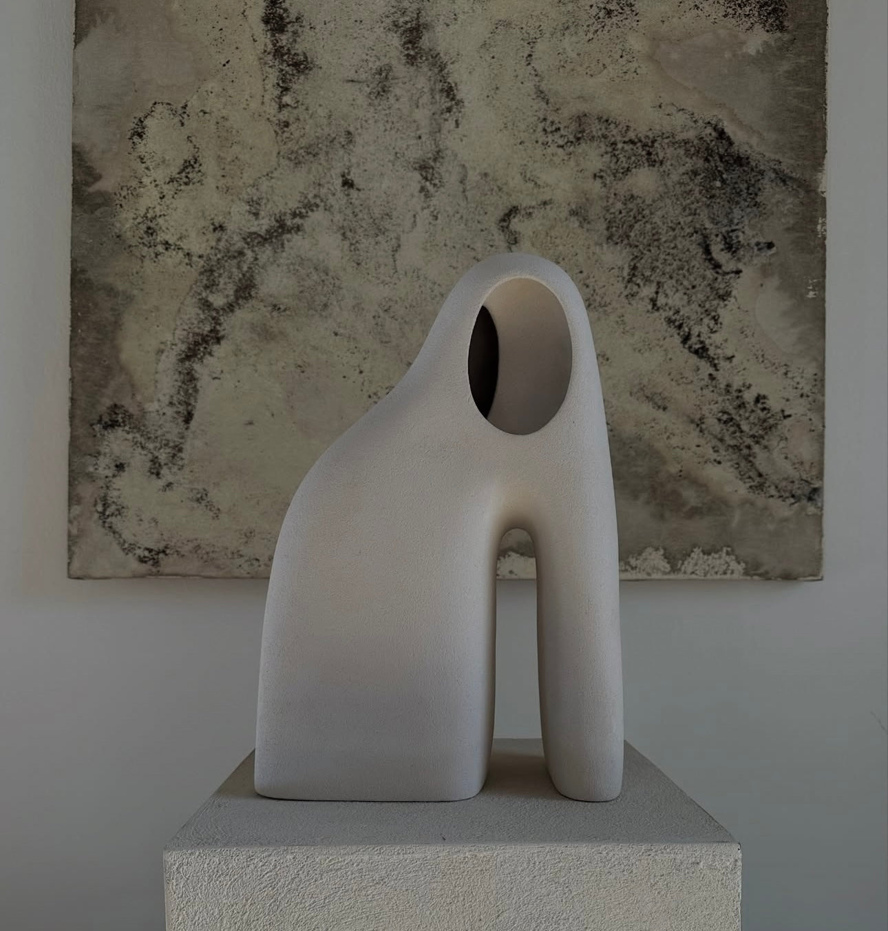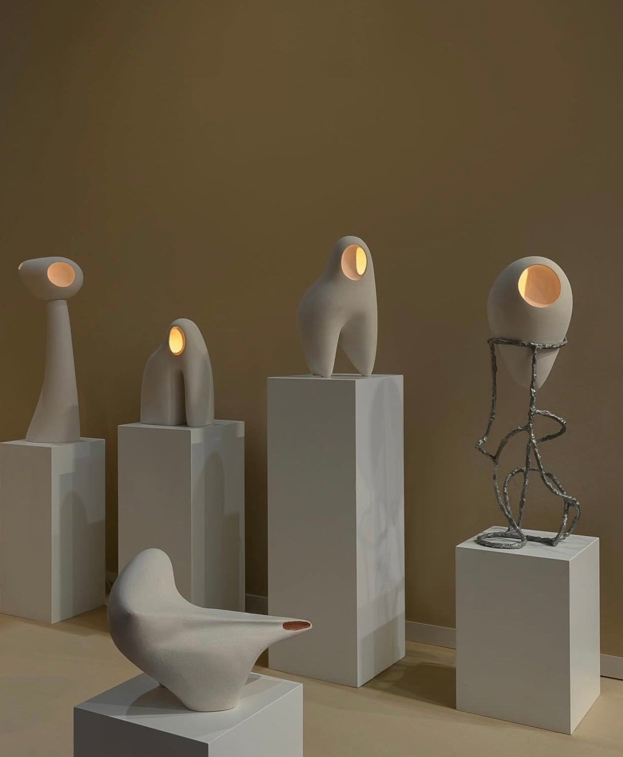 Discover NOMAD II:02, an exceptional lamp by renowned artist and architect Sofia Karnukaeva. This unique piece, meticulously formed from white stoneware, merges sculpture with light, embodying Sofia's distinct artistic vision.