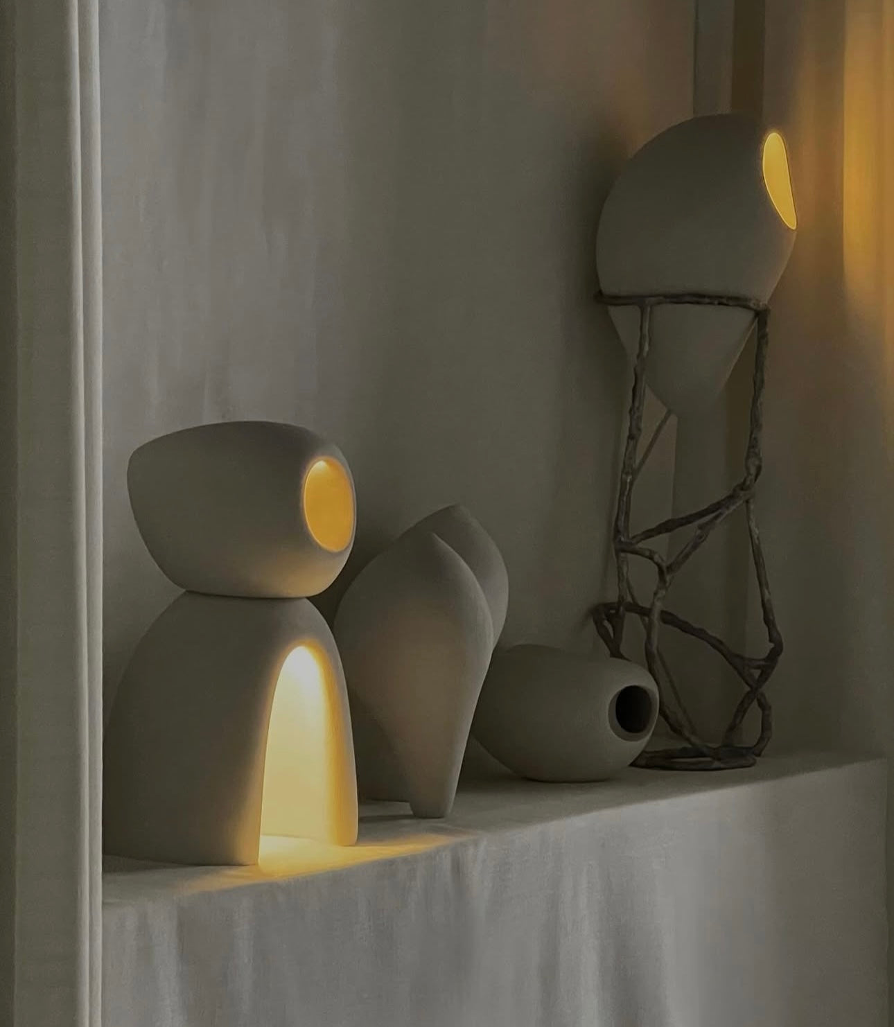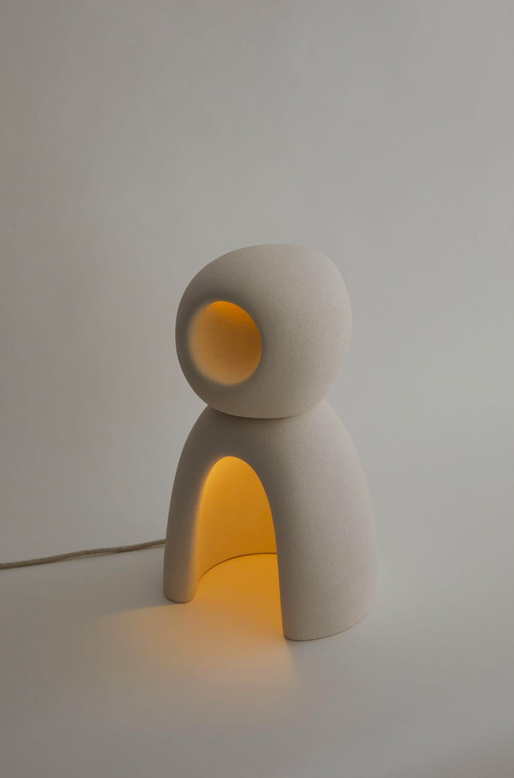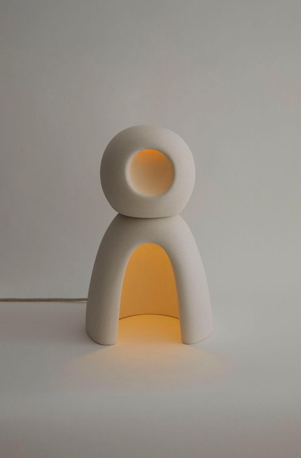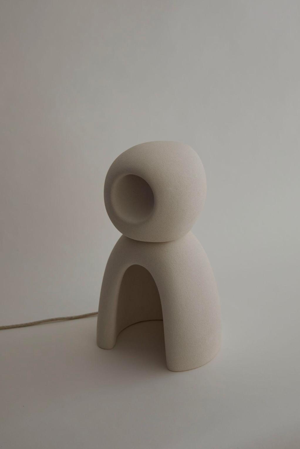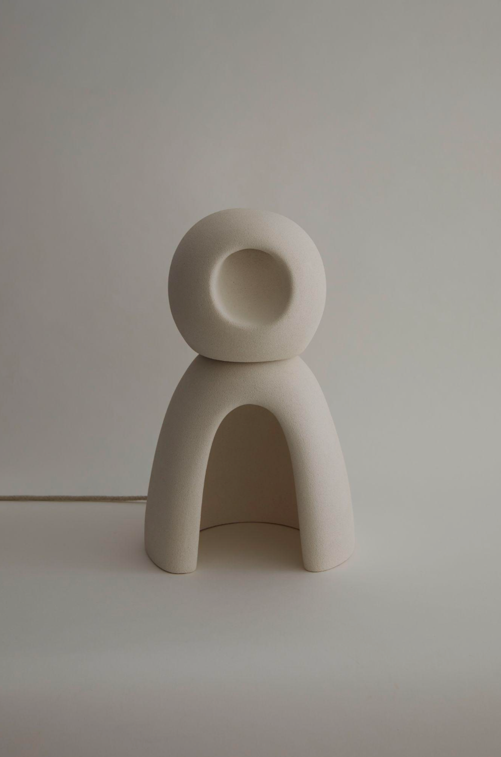 Illuminate your space with NOMAD II:09, crafted from exquisite white stoneware, its unique silhouette evokes a quiet, almost meditative quality. When lit, it casts a warm, inviting glow from within, turning any room into a sanctuary of contemporary design and subtle beauty. This is more than a lamp, it's a piece of functional design.