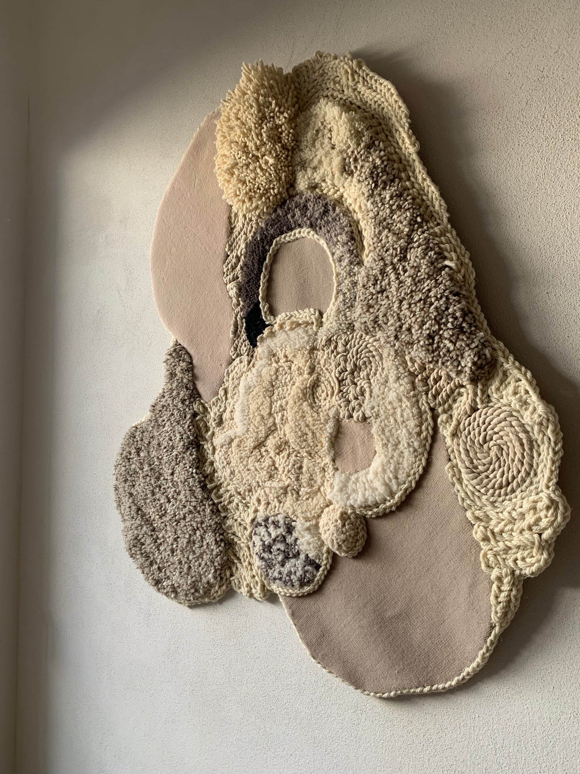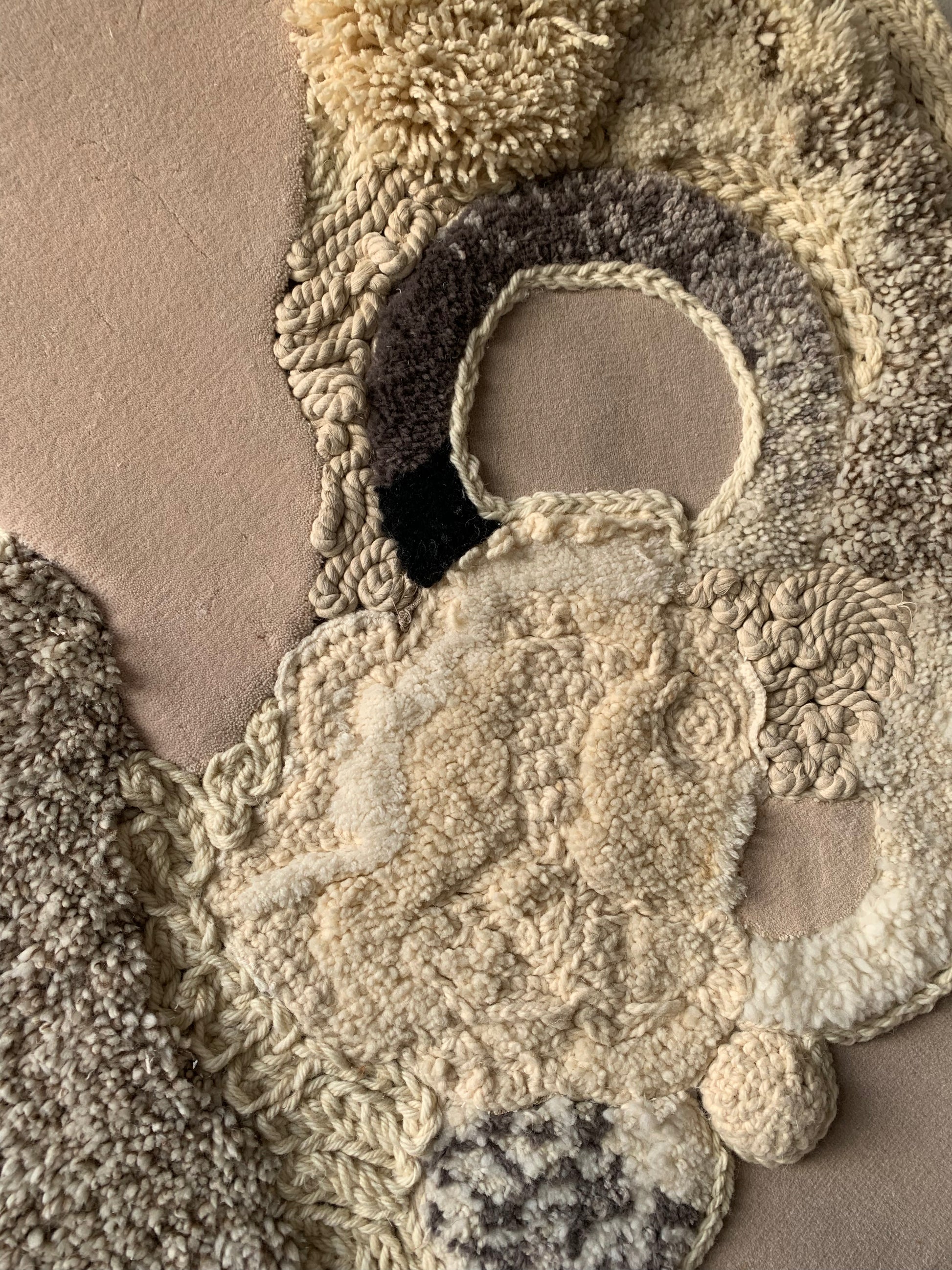Tapestry made of transhumant Merino wool, Australian wool, and linen cord.